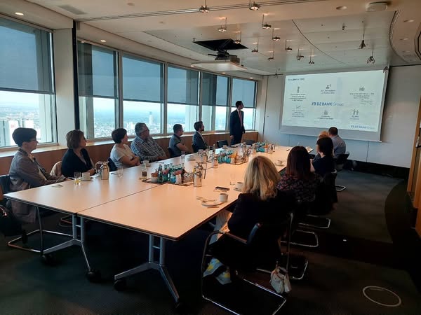 Dalyviai išvyko ir į Frankfurte įsikūrusį centrinį kooperatinį banką DZ BANK, kuris yra antrasis pagal turto dydį bankas Vokietijoje ir centrinė įstaiga, kuriai priklauso daugiau nei 700 kooperatinių bankų (narių).